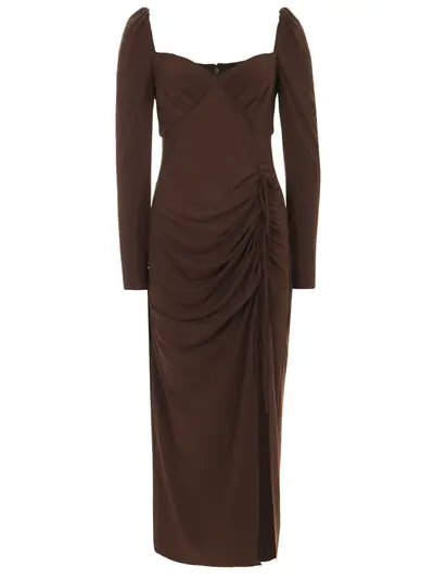 -Платье купажированного состава в шоколадном цвете от SELF-PORTRAIT.