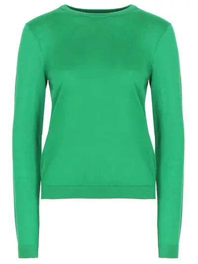 -Зеленый джемпер из тонкого кашемира от RALPH LAUREN. -Базовая модель полуприлегающего силуэта, длинные рукава, эластичные рельефные манжеты, пояс и круглый вырез горловины.