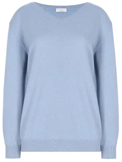 -Голубой пуловер из мягкого кашемира от BRUNELLO CUCINELLI.