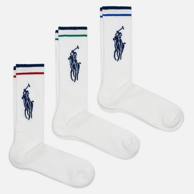 Материал: 96% хлопок, 4% эластан. Страна-производитель: Китай. Комплект носков Polo Ralph Lauren Big Polo Pony Tech Crew 3-Pack, цвет белый, размер 40-46 EU