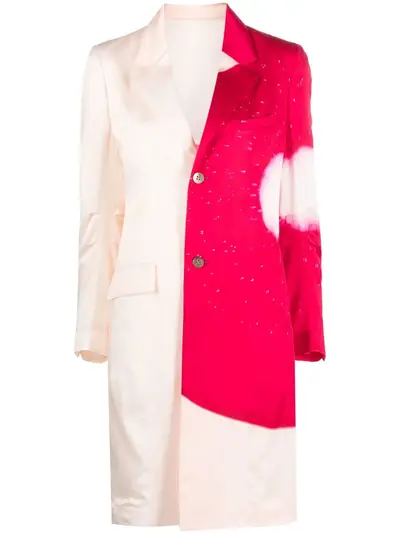 hot pink/off-white asymmetric design graphic print to the side classic lapels front button fastening long sleeves two front flap pockets central rear vent