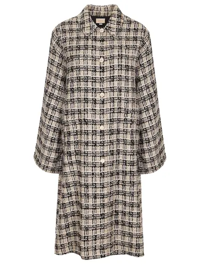 -Расклешенное однобортное клетчатое пальто из фактурного смесового твида с добавлением мерцающего люрекса от GUCCI.
