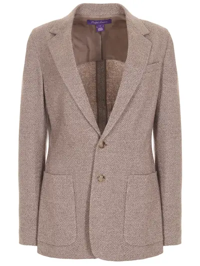 -Коричневый пиджак из смесовой шерсти с добавлением шелка и кашемира с узором "елочка" от RALPH LAUREN.
