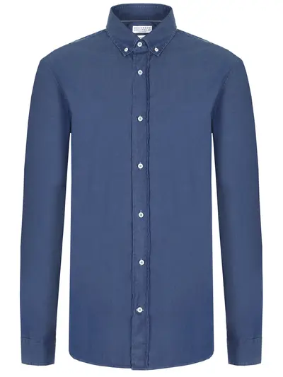 -Синяя рубашка из хлопка от BRUNELLO CUCINELLI.