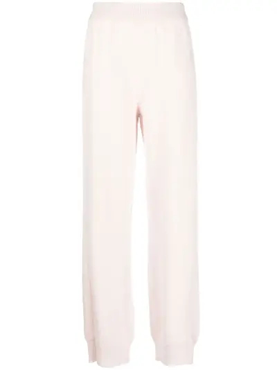 powder pink cashmere knitted construction high-waisted straight leg side slits ankle-length