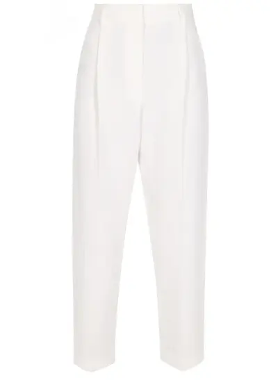 -Белые укороченные брюки из льняного и хлопкового репса от BRUNELLO CUCINELLI.