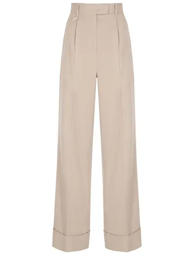 -Бежевые брюки из смесового льна с добавлением вискозы от LORENA ANTONIAZZI.