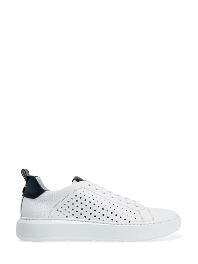 Мужские кеды от Barrett созданы из гладкой телячьей кожи в белоснежном оттенке. Контрастные вставки на спинке подчеркивают динамичный стиль изделия, литая амортизирующая подошва дополнена фактурным узором. Дышащая отделка в технике лазерной перфорации обеспечивает комфорт в течение дня. Детали: круглый мысок, шнуровка в тон. Сделано в Италии.