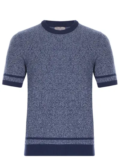 -Синяя меланжевая футболка из хлопкового трикотажа от CANALI.
