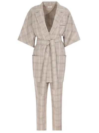-Бежевый клетчатый костюм из шерсти и хлопка от PANICALE.