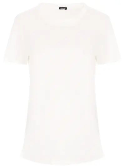 -Белая футболка изо льна от KITON. -Полуприлегающий крой, короткие рукава, круглый вырез горловины, вышитый логотип сбоку.