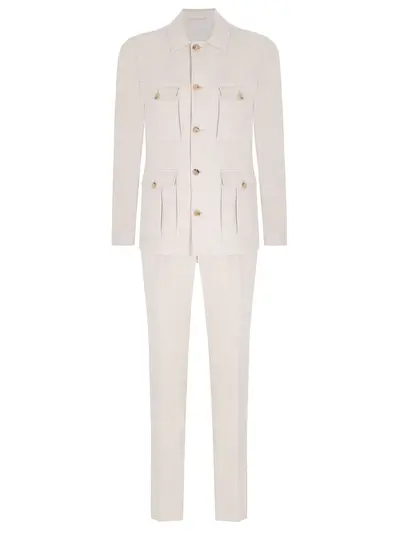 -Бежевый костюм изо льна от LUIGI BORRELLI.
