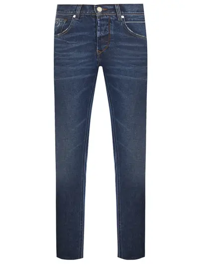 -Джинсы Slim Fit из хлопка от BALDESSARINI. -Средняя посадка со шлевками на поясе, прорезные и накладные карманы, застежка-пуговицы, фирменная нашивка с логотипом бренда. -Модель декорирована искусственными заломами и потертостями.