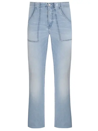 -Голубые джинсы из хлопка от BALDESSARINI. -Средняя посадка со шлевками на поясе, накладные карманы, застежка-молния и пуговица, фирменная нашивка с логотипом бренда. -Модель Boot cut - расклешенные от колена джинсы.