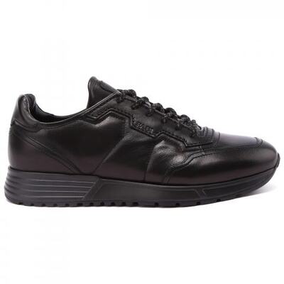 Кожаные кроссовки от Fabi в чёрном цвете. Базовая модель, подходящая к любому образу. Верх выполнен из гладкой натуральной кожи, на резиновой подошве. Внутри подкладка и стелька из натуральной кожи.