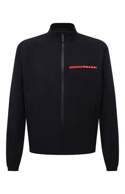Легкий бомбер с воротником-стойкой и застегивающимися на прорезиненные молнии врезными карманами сшит из непромокаемого дышащего материала, который растягивается в четырех направлениях. Куртка с водонепроницаемыми термошвами и логотипом марки на груди вошла в коллекцию сезона осень-зима.