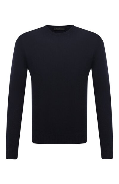 Синий джемпер, очищенный от всевозможного декора, одинаково удачно дополнит и повседневный образ с джинсами, и комплект в стиле casual-friday. Лаконичный дизайн модели из осенне-зимней коллекции Миучча Прада уравновесила материалом. Изделие связали из тонкого нежного кашемира, которому нет равных в мягкости, сохранении тепла и долговечности.