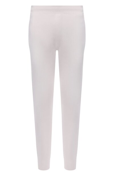 Джоггеры сшили из почти невесомого кашемира. Изделие дополнили боковыми врезными карманами и задним накладным с фирменным треугольным патчем из такого же материала.