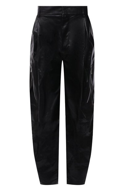 В коллекции сезона весна-лето Дэниел Ли представил безупречную версию карго. Привычному габардину дизайнер предпочел мягкую мелкозернистую кожу бережной выделки, за счет которой брюки получились легкими и эластичными. На принадлежность марке намекает треугольник, сложенный из шлевок на широком поясе и пуллеры молний. Если планируете полностью черный образ, попробуйте сыграть на контрасте фактур, подружив модель с водолазкой из матовой шерсти.