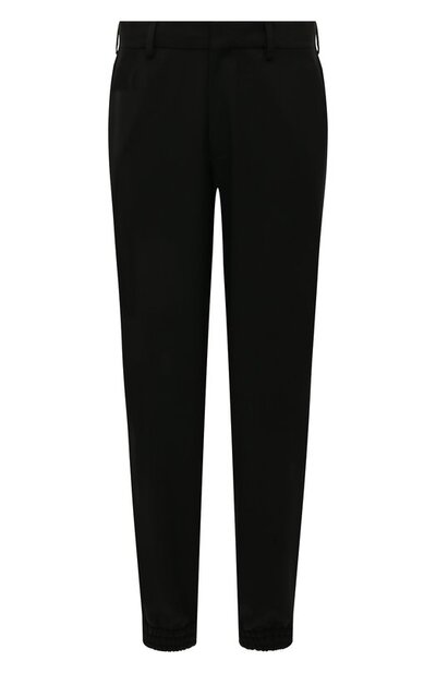 В случае с черными джоггерами Миучча Прада пересмотрела максимально деликатно традиционный подход к созданию моделей в спортивном стиле. Все дело в широком поясе со шлевками, как у классических вещей. Для пошива изделия мастера марки использовали мягкий плотный габардин, сотканный из тонких волокон шерсти. Чтобы сделать материал прочнее, в состав включили гладкие нити полиэстера.