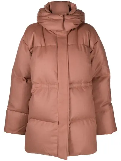 mauve brown wool-cashmere blend/feather down padded design classic hood concealed front fastening long sleeves