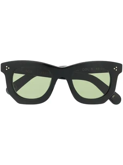 black acetate green tinted lenses straight arms curved tips These glasses come with a protective case. All glasses from FARFETCH are sold as non-prescription frames.