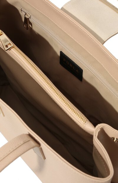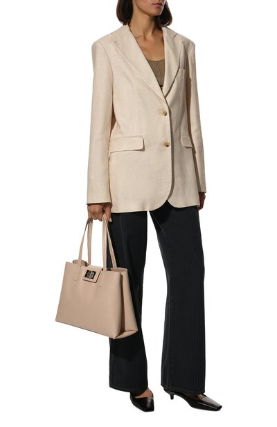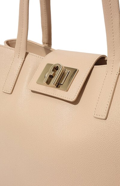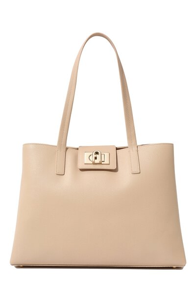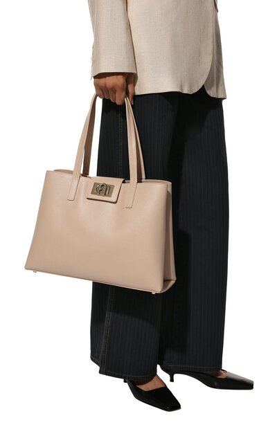 Бежевая сумка 1927 Ballerina с двумя ручками сшита из фактурной мягкой кожи с матовым блеском. Лаконичный однотонный аксессуар закрывается узким клапаном с поворотным замком в виде логотипа марки, основанной Альдо Фурланетто. В два вместительных отсека и крупный разделительный карман на молнии можно положить планшет, кошелек, телефон и складной зонт.