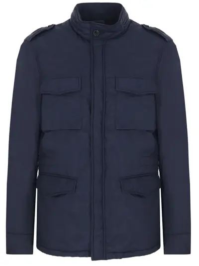 -Длинные рукава, прорезные и накладные карманы с клапанами, ворот-стойка, застежка-молния и кнопки.