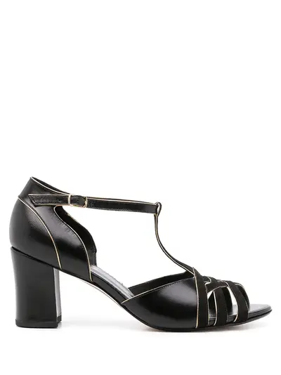 black leather leather lining peep toe buckle-fastening ankle strap branded insole high block heel