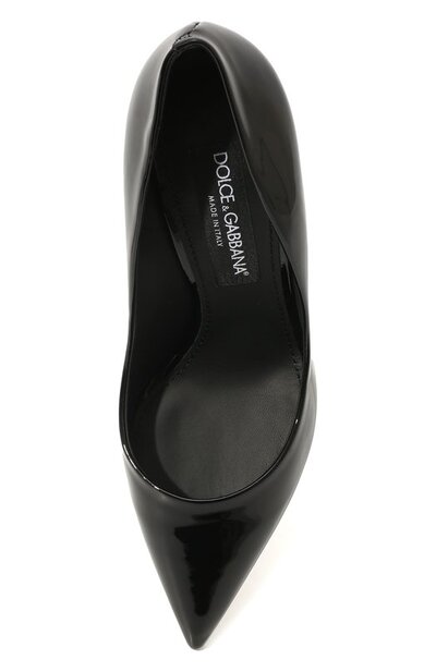 Туфли-лодочки Cardinale будут одинаково уместны и на свидании, и в офисе, и на торжественном мероприятии. Произвести верное впечатление в любой ситуации помогут отточенный силуэт с зауженным мысом и лакированная кожа черного цвета. Ярким бликам на гладком материале вторит блеск DG-монограммы на высокой шпильке.