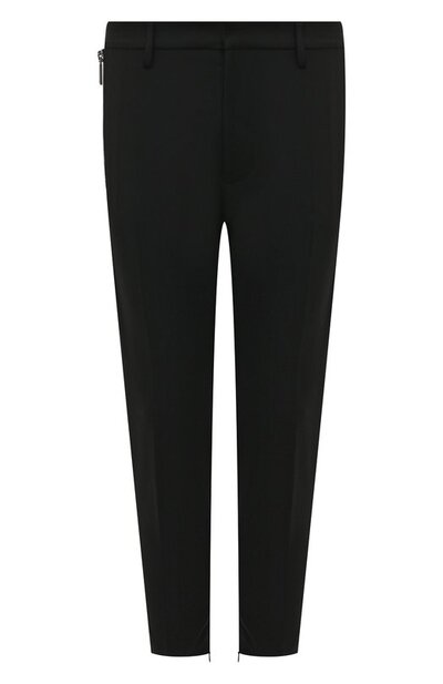 Братья Кейтены сделали брюки расслабленной вариацией классических моделей. С ними вещь роднит черный цвет и традиционный крой со стрелками. Формальности ее лишает зауженные укороченные брючины с молниями на внутренних швах. Чтобы одежда не сковывала движения, в плотную шерсть добавили тонкие нити эластана.