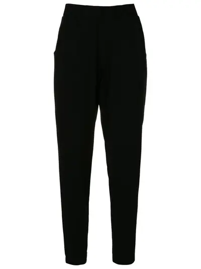black stretch-jersey elasticated waistband two diagonal pockets to the sides straight leg