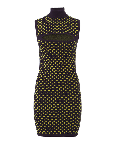 Платье из уплотненной трикотажной вискозы. Эластичное изделие облегающего силуэта с вырезом на груди.