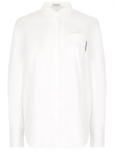 -Белая рубашка из смесового хлопка от BRUNELLO CUCINELLI.