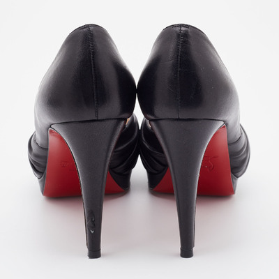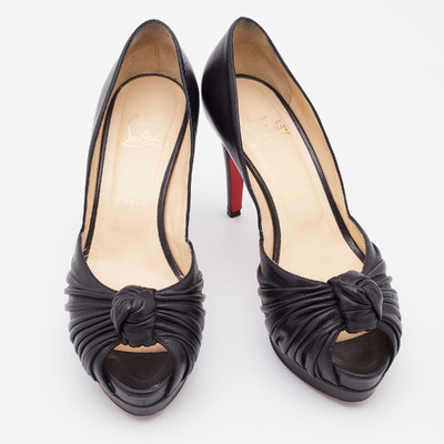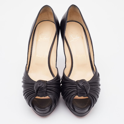 Christian Louboutin Black Leather Jenny Knot Peep Toe Platform Pumps Size 37.5 730113 (чёрный, lpn20387937)
