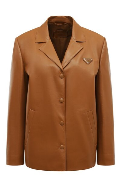 Кожаный жакет Prada 55800-08p-f0018 (коричневый, lpn17957545)