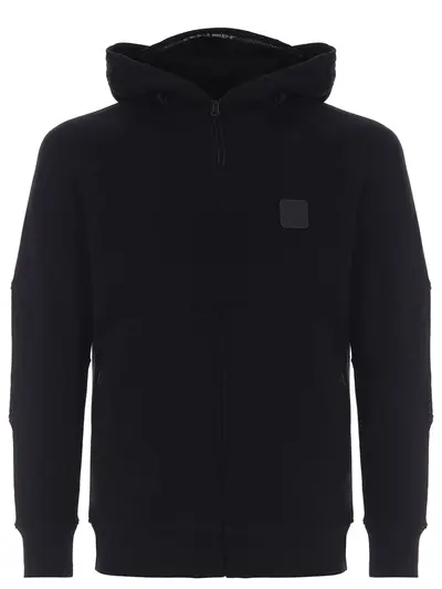 -Черная толстовка из хлопка от C.P. COMPANY. -Регулируемый капюшон, длинные рукава, эластичные манжеты и пояс по низу изделия, два накладных кармана, застежка-молния.