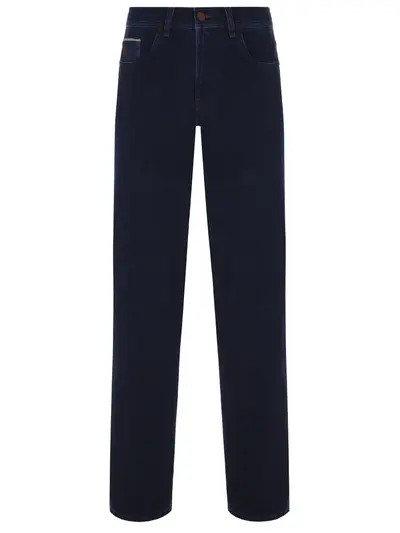-Джинсы Regular Fit из хлопка синего цвета от SCISSOR SCRIPTOR. -Средняя посадка со шлевками на поясе, прорезные и накладные карманы, фирменная нашивка с логотипом марки.