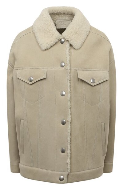 Миучча Прада адаптировала легкую джинсовую куртку для холодов, превратив ее в дубленку из густой овчины. Бархатистый материал намного лучше денима защищает от морозов и ледяного ветра и почти не отличается от ткани визуально. Зимнюю верхнюю одежду в кремовой модели выдает волнистый мех на отложном воротнике и вдоль планки с кнопками.