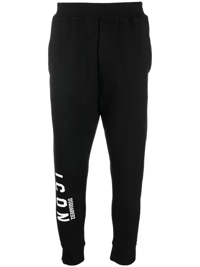 black/white cotton signature Icon motif logo print at the leg tapered leg elasticated waistband elasticated ankles two side welt pockets