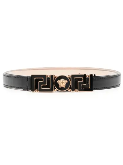 black calf leather monogram plaque gold-tone logo plaque clip-on buckle fastening adjustable fit