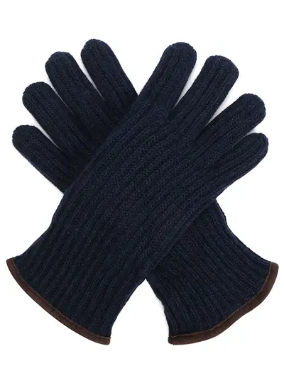 -Синие вязаные перчатки из кашемира от SVEVO. -Классическая форма с эластичной манжетой-отворотом, которая надежно фиксирует изделие на руке, сохраняя тепло.