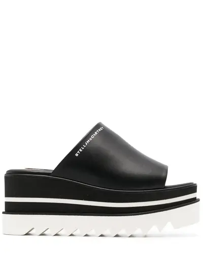 jet black slip-on style logo print to the side open toe branded insole platform sole