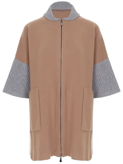 -Двусторонний кардиган из мягкого кашемира серого и кэмел цветов от LE TRICOT PERUGIA.