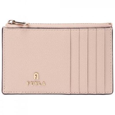 Кредитница из натуральной кожи в розовом цвете от FURLA. Маленький картхолдер FURLA выполнен из мягкой кожи телёнка Roma. Практичный аксессуар с металлической застёжкой молнией позволит аккуратно и безопасно расположить ваши карты. Пять слотов для карт спереди и сзади. Карман на молнии. Миниатюрные тиснёные логотипы FURLA и Arch спереди.