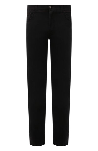 Черные прямые джинсы с классической посадкой сшиты из облегченного гладкого хлопка стрейч с легким матовым блеском. Сзади на поясе — вертикальный кожаный патч, украшенный металлической эмблемой марки с гальваническим покрытием. Наши стилисты предлагают сочетать модель с джемпером в тон и коричневыми кроссовками.