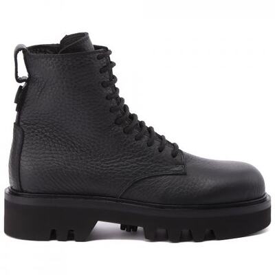 Ботинки из натуральной кожи в чёрном цвете от FURLA. Модель в стиле casual, которая подойдёт к любому образу. Ботинки выполнены из натуральной зернистой кожи и дополнены плотной шнуровкой в цвет. Сбоку расположена практичная молния. Дизайн завершает высокая подошва из резины с объёмным протектором. Внутри стелька из меха.