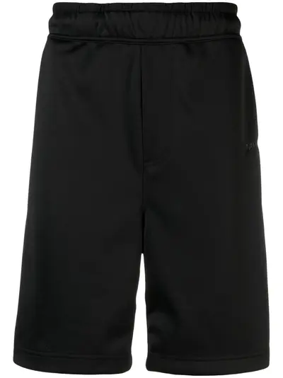 black embroidered logo to the front two side slit pockets rear zip-fastening pocket knee-length