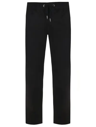 -Черные спортивные брюки из хлопка от DOLCE&GABBANA. -Модель со средней посадкой, поясом на кулиске, прорезными карманами на молниях, нашивкой с логотипом бренда.