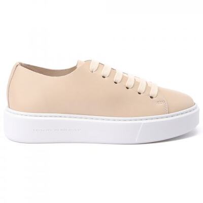 Бежевые кеды станут базовой парой на весну и лето. Модель выполнена из гладкой натуральной кожи, на резиновой подошве. Внутри подклад и стелька также из кожи. Лаконичный дизайн завершает тиснённая надпись в виде логотипа на подошве. Кеды смогут дополнить практически любой образ.